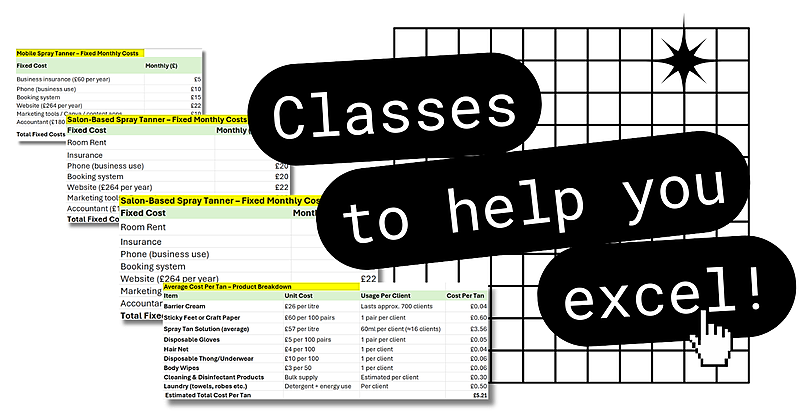 This e-book is designed for spray tan artists at any stage of business who want to understand the true cost of running a sustainable, profitable spray tan service. Whether you are mobile, home-based, or salon-based, this training will help you take control of your pricing by learning how to calculate costs accurately and pay yourself fairly.